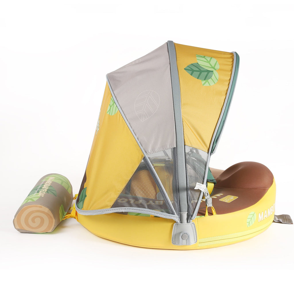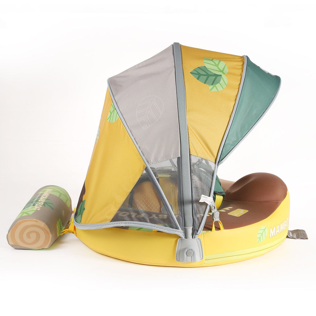 O flutuador vem com uma capota ajustável em 3D que oferece proteção solar FPS 50+. Esta capota inovadora oferece um ângulo de sombra estendido de 180 graus + 45 graus e possui armazenamento em uma única peça, oferecendo proteção completa contra os raios UV contrabaixo, mantendo seu bebê na sombra e ao ar livre.