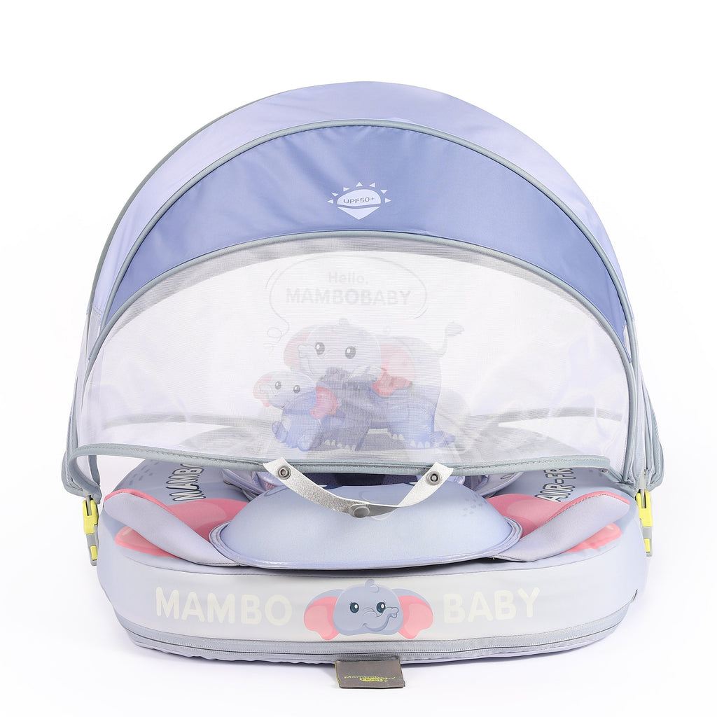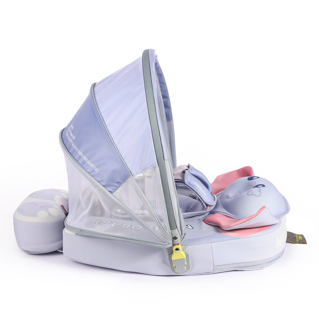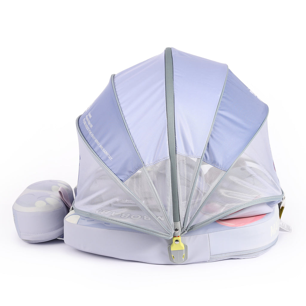 O flutuador é equipado com uma capota totalmente ajustável de 360 graus que oferece excelente proteção solar. A capota pode ser totalmente dobrada para trás quando não estiver em uso, proporcionando proteção total contra os raios UV nocivos e mantendo seu bebê fresco e confortável. As laterais de malha respirável da capota permitem que os pais vejam facilmente o seu pequeno, permitindo que monitorem a condição do bebê e interajam com ele durante o mergulho.