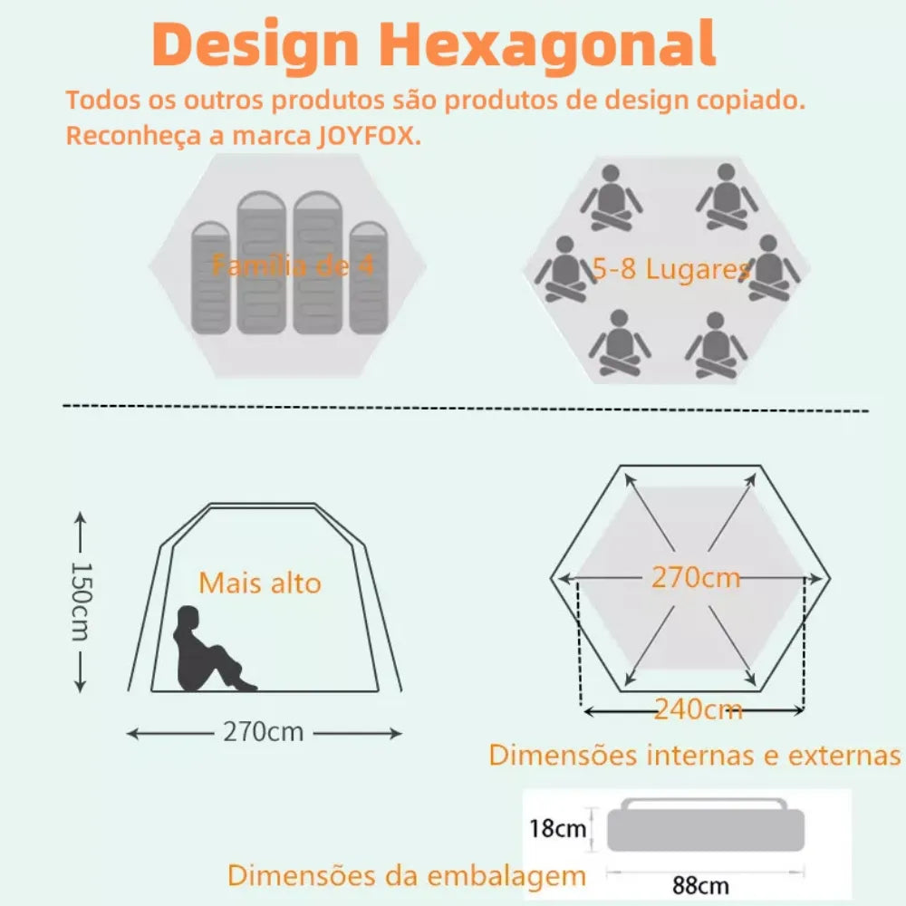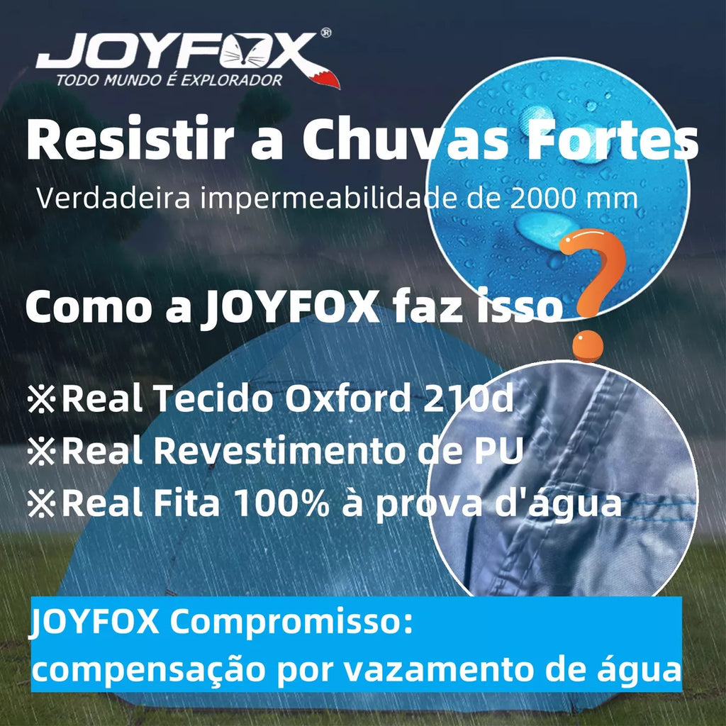 A barraca deve ser coberta por uma capa à prova de chuva (dentro da embalagem) quando você a usar durante a estação chuvosa.