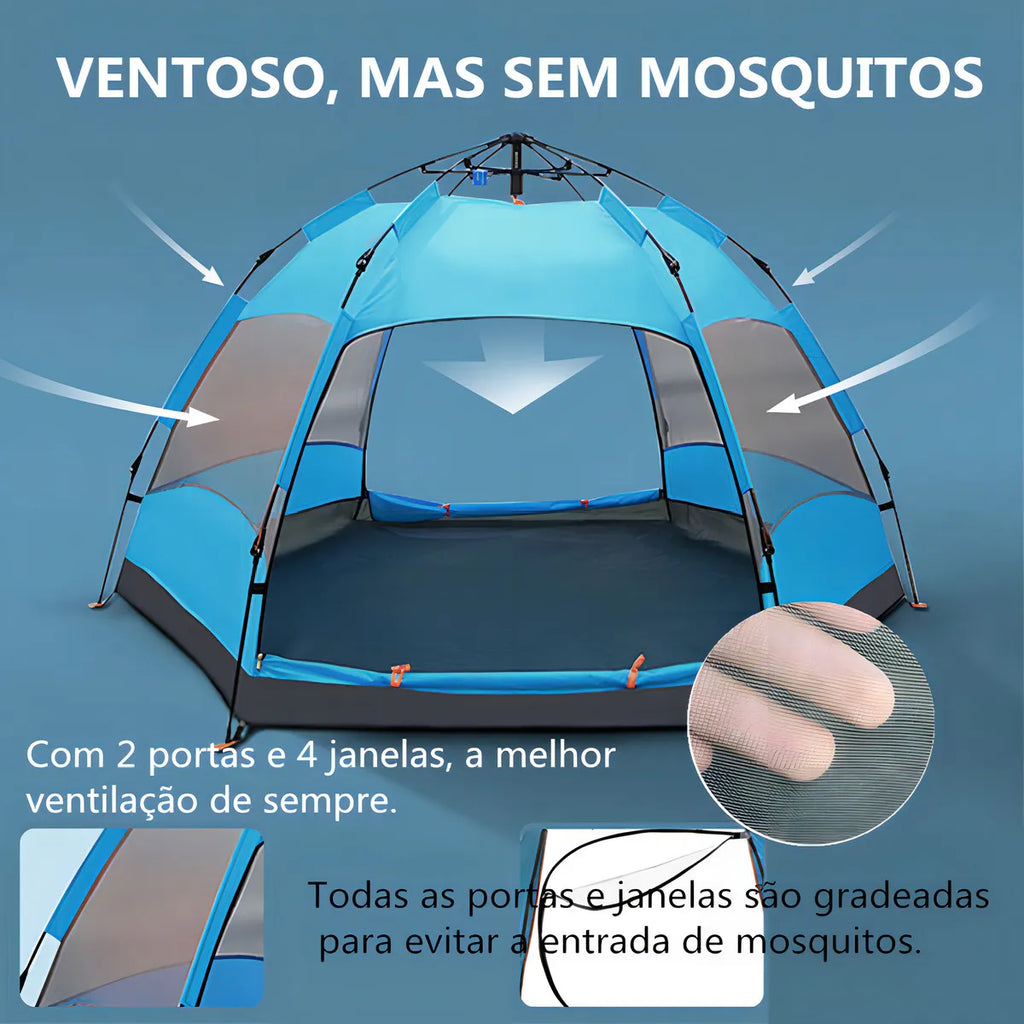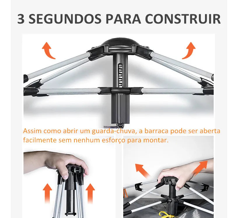 Simplesmente levante a parte superior da tenda para abri-la automaticamente.
